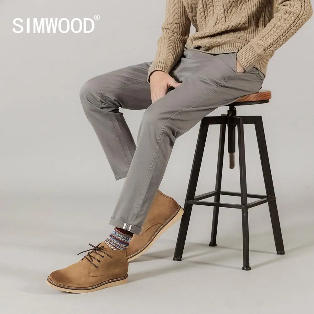 Promo SIMWOOD 2019 Autumn Winter New Casual Pants Men Cotton Slim Fit Chinos Fashion Trousers Male Brand